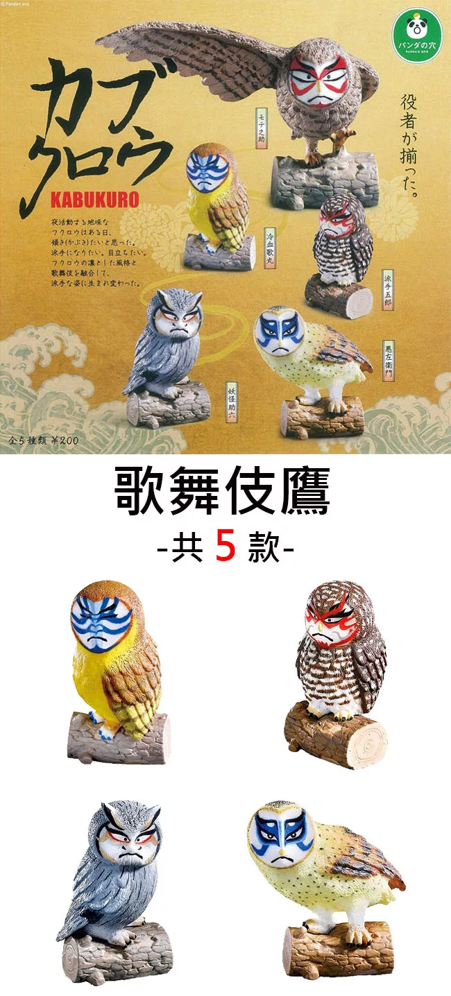 博客來 日本正版授權 全套5款歌舞伎鷹扭蛋 轉蛋公仔歌舞伎貓頭鷹熊貓之穴